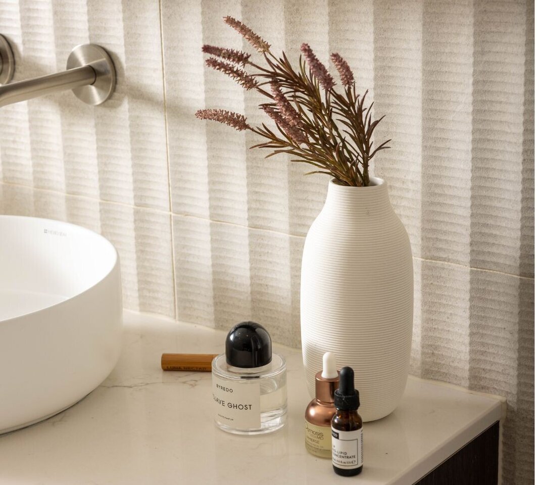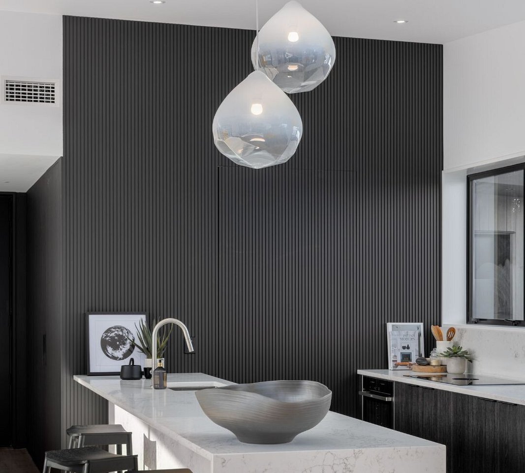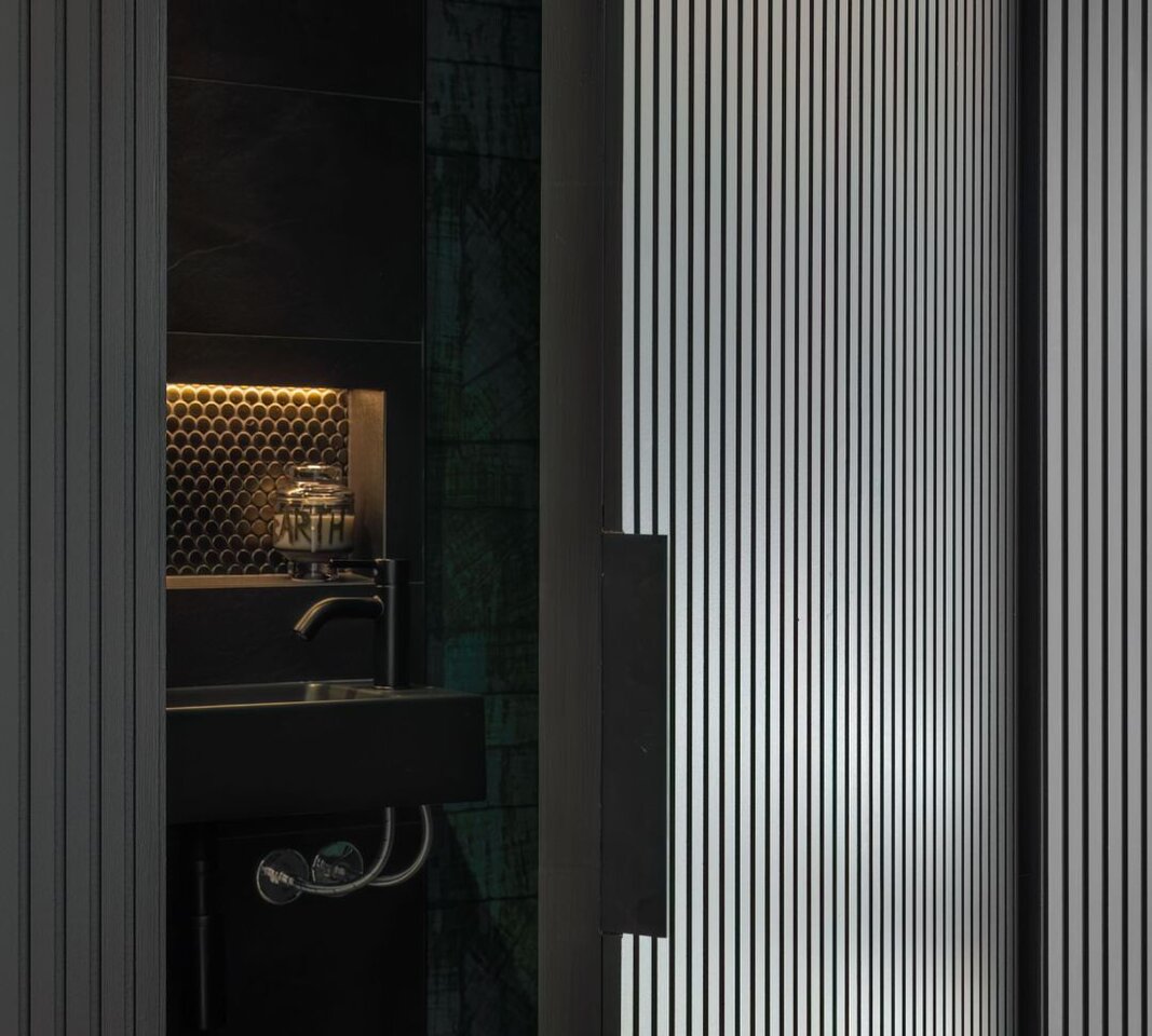 A collaboration with Barry O’Connor Architects this twist of mid-century modern pushed the boundaries. The owner handed over full design responsibility and loved everything we proposed! Our highlights were the hidden doors and powder room. We wanted to create a powder room that guests did not expect and was completely individual to the house and we started by putting it behind a hidden door to add mystery and then created the space using colour, mood and texture.